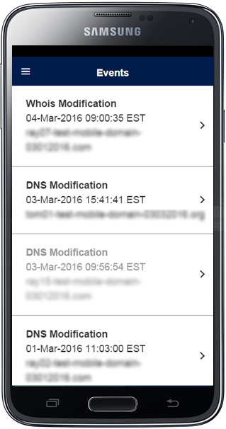 List of notification events. Events gray out when viewed, and long-push allows user actions.
