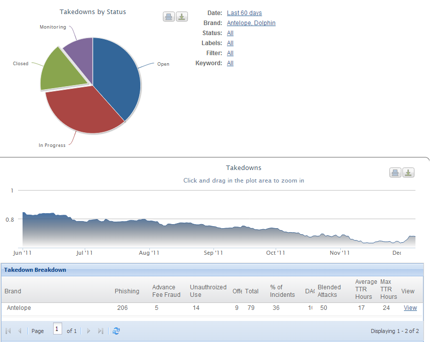 Chart Detail View: User can click into the interactive charts to drill into more detailed information, including breakdown, sparkline, and table data.